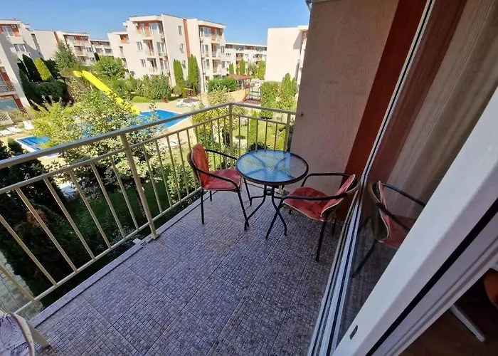 在Modern 1 Bed Apt, Nesebar Fort 阳光海滩,可以看见游泳池的景致,距离Karting Track只有0.6公里. 这套公寓设有1间卧室,配备咖啡/茶设施,休息区 和电视.